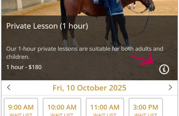 Tap the Info button to see important notes and details you should know before booking — all without leaving the page.